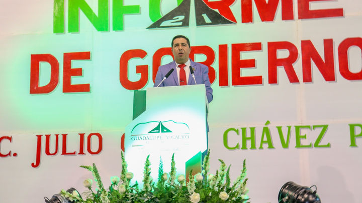 Ante una concurrida asistencia de pobladores de Guadalupe y Calvo e integrantes de la Administración municipal 2021-2024, rindió su Segundo Informe de Gobierno el Lic. Julio César Chávez Ponce, el cual dijo sentirse muy contento por todo el trabajo realizado durante este segundo año de gestión, y a la vez expresó que se continuará trabajando de manera coordinada con todos los niveles de gobierno para mejorar la calidad de vida de los Guadalupenses.